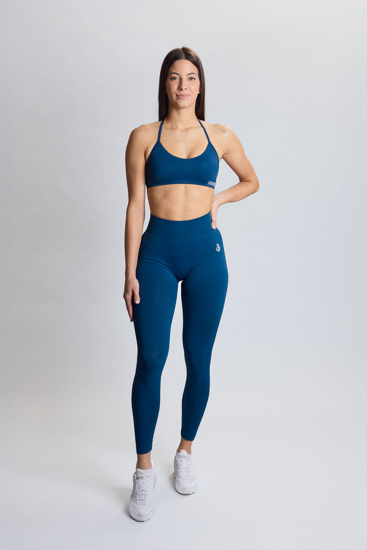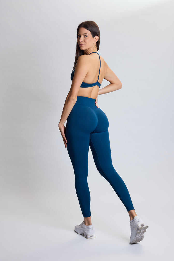 Visok kompresijski pas nudi rahel tummy control učinek, medtem ko rebrasti detajli pod zadnjico zagotavljajo naraven “booty lift”.